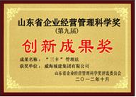 成果名稱:“三卡“管理獎 獲獎單位:威海城建集團有限公司 頒獎單位:山東省企業委員會頒發