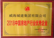 成果名稱:2018中國房地產行業優秀企業,獲獎單位:威海城建集團有限公司,頒發單位:中國房地產行業管理協會