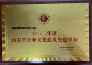 成果名稱:山東省企業文化建設先進單位 獲獎單位:威海城建集團有限公司,頒發單位:山東省企業文化學會