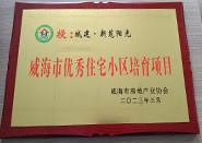 成果名稱:威海市優秀住宅小區培育項目 獲獎單位:城建·新苑陽光 頒發單位:威海市房地產業協會