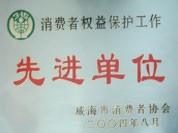 獲獎名稱:消費者權益保護工作先進單位 頒發單位:威海市消費者協會