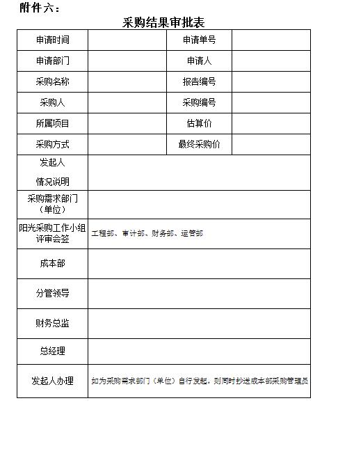 7.采購評審小組形成采購報告,由成本部或需求部門(單位)根據需要發起《采購結果審批表》,按照評審結果確定成交供應商;